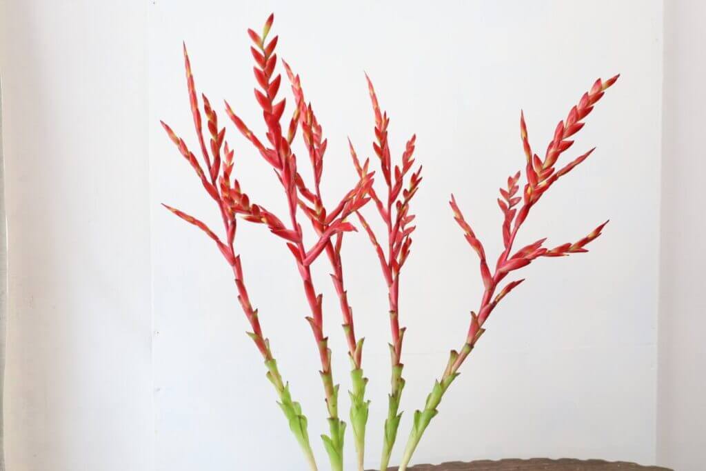 特徴:『スマッシュブランチ』は、フリーセア属の中でも赤〜オレンジを基調に、ストライプやグラデーションが入る鮮やかな苞(ほう)を持つ、観賞性の高い品種です。仏炎苞のように見える部分は花ではなく苞で、中央から小さな本花が咲くこともあります。草丈は50〜70cm前後。南国らしい色合いとシャープなフォルムが魅力です。
