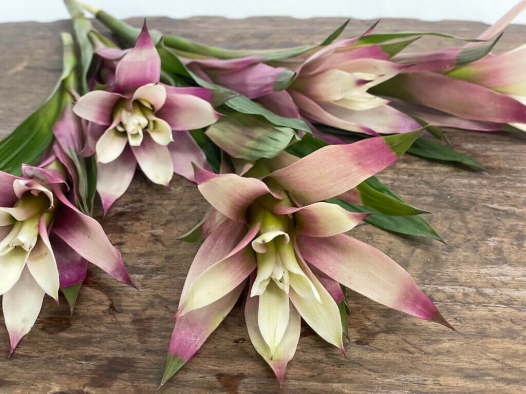備考:苞が硬くしっかりしており、水揚げ処理は不要です。茎がしっかりしているため、倒れにくい安定した器を選ぶと良いでしょう。比較的日持ちが良く、2週間ほど鑑賞可能です。