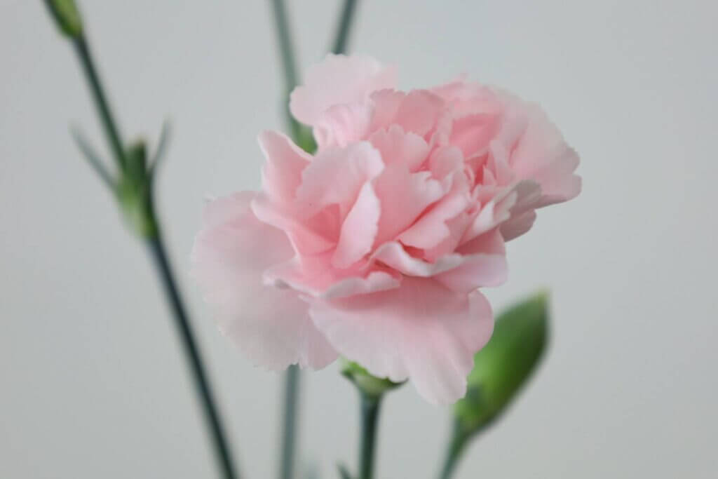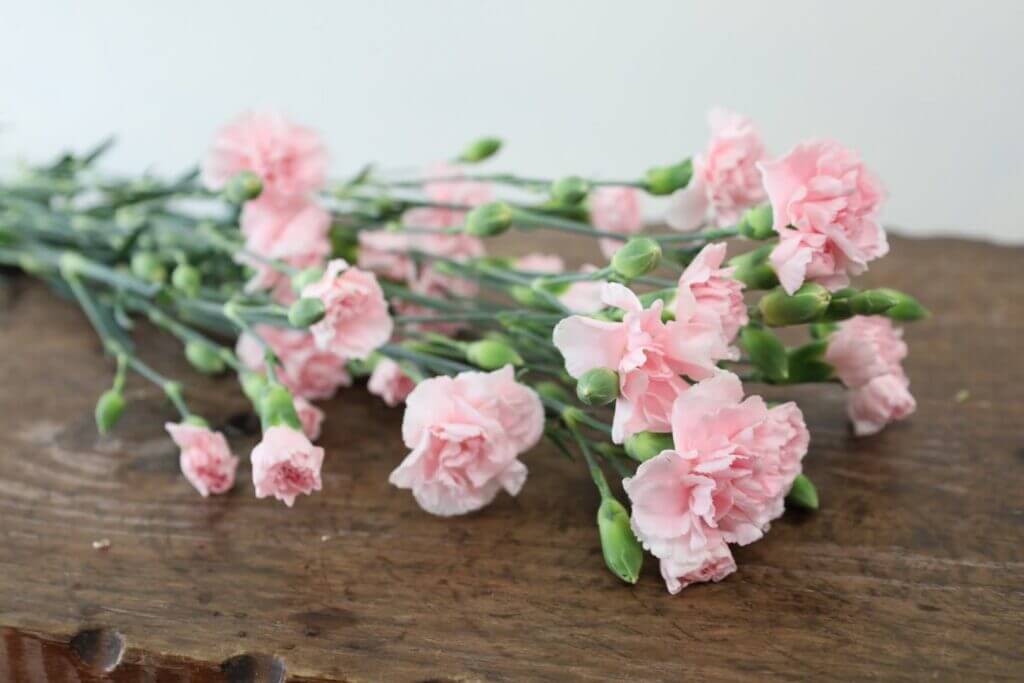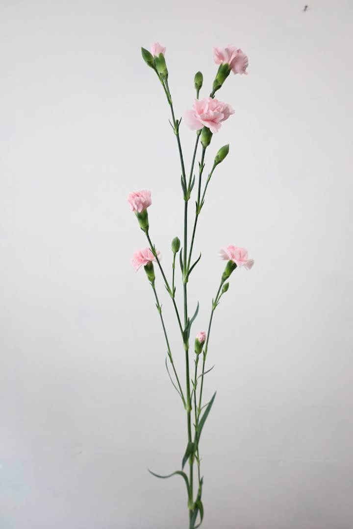 特徴:『恋心』は、淡く柔らかなピンク色をしたスプレータイプのカーネーションで、1本の茎に複数の小輪花をつけるのが特徴です。繊細で優しい雰囲気を持ち、花弁はややフリルがかっており、可憐な印象を与えます。草丈は40〜60cm程度で、アレンジメントにボリュームを持たせやすい品種です。