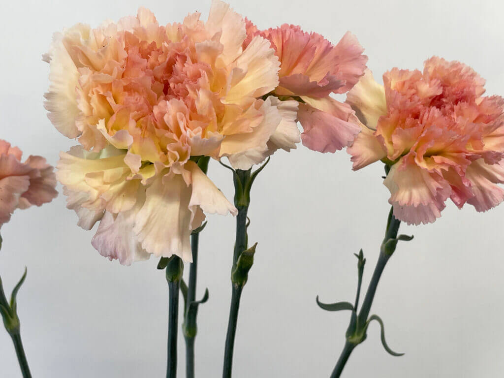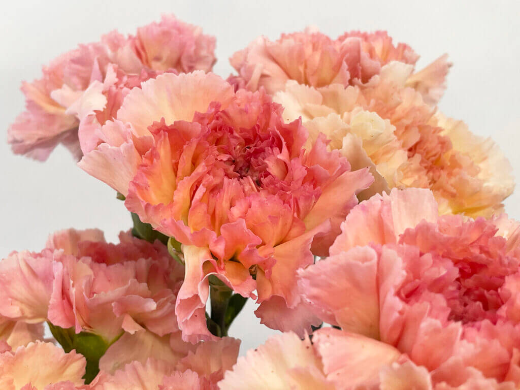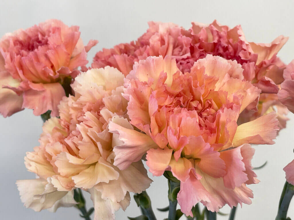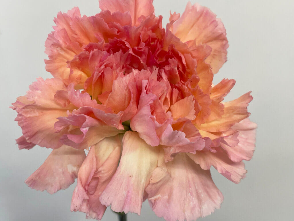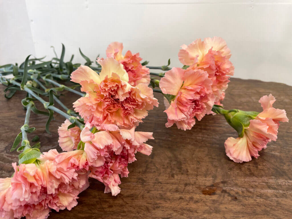 特徴:『オーロラオレンジ』は、明るく濃淡のあるオレンジ色が印象的なカーネーション品種。花弁はフリル状で厚みがあり、開花するとふんわりとした丸みのあるシルエットになります。色に奥行きがあり、咲き進むにつれて微妙に色が変化するのも魅力。花径は5〜6cm、草丈は50〜70cm前後。元気で陽気な印象を与えるビタミンカラー系の代表格です。