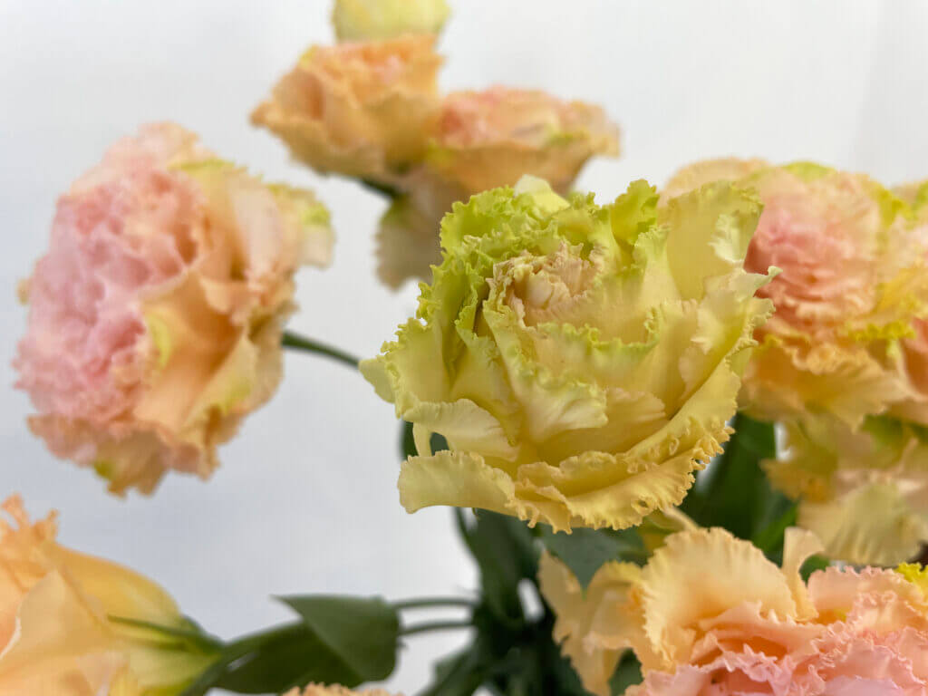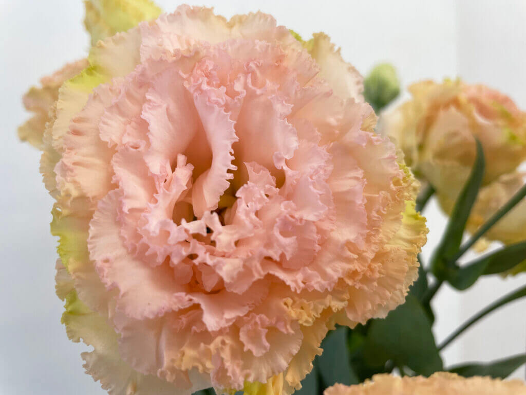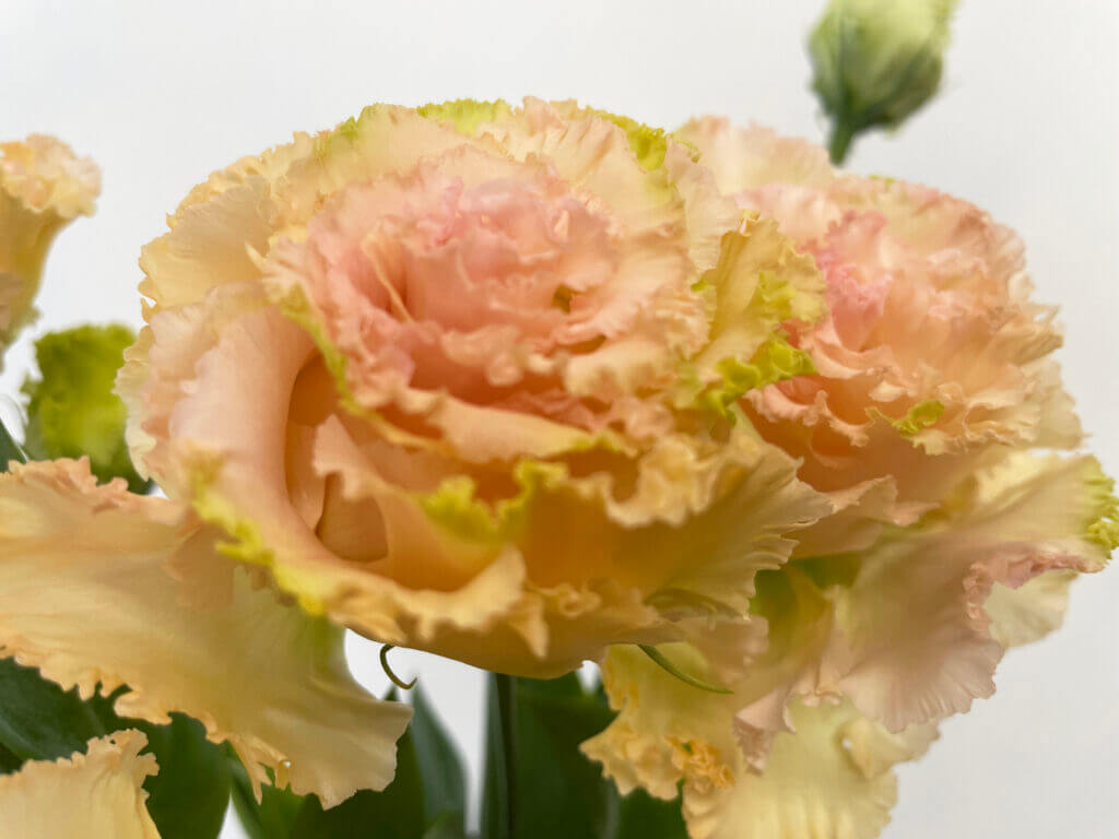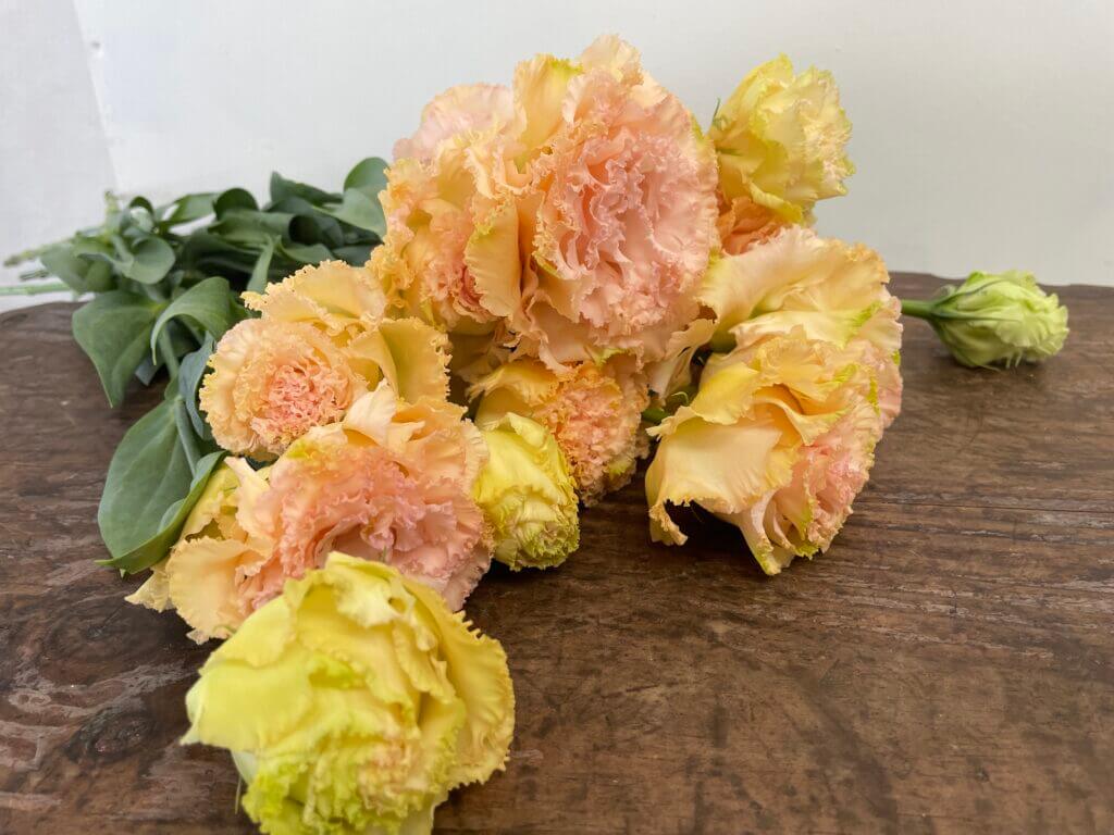 特徴:『NFマンゴー』は、トルコキキョウの中でも珍しい、淡いアプリコット〜マンゴーオレンジ系のやわらかな花色をもつ品種で、花弁は軽やかに波打つフリル咲き。中輪〜やや大輪で、咲き進むとクリーミーなグラデーションが現れ、ナチュラルで優しい印象を与えます。草丈は50〜70cmほどで、茎はやや細めながらもしなやかで扱いやすいのが特徴です。
