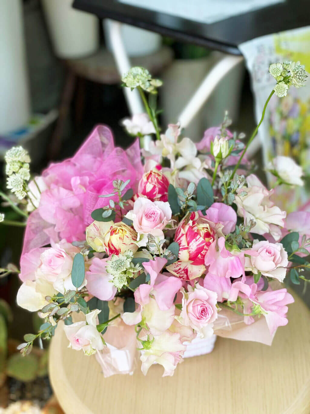 は行 スタンダード 複色系の花 パーティラナンキュラ バラ(薔薇) 切り花図鑑 Facebook Twitter はてブ Pocket Feedly パーティラナンキュラ バラ(薔薇) 上はパーティラナンキュラを使用したフラワーアレンジメントです。スイートピー、アストランティア、ユーカリなどと合わせています。 パーティラナンキュラ バラ(薔薇) 名:パーティラナンキュラ バラ(薔薇)科:バラ科学名:Rosa英名:rose原産地:ヨーロッパ・アジアの温帯 出回り時期:周年水揚げ:水切り 花言葉:誕生花: こちらもご覧ください : パパガヨ バラ(薔薇) フィスタ+ バラ(薔薇) ピーチアバランチェ バラ(薔薇) パスティーニコルバーラ ガーベラ Facebook Twitter はてブ Pocket Feedly